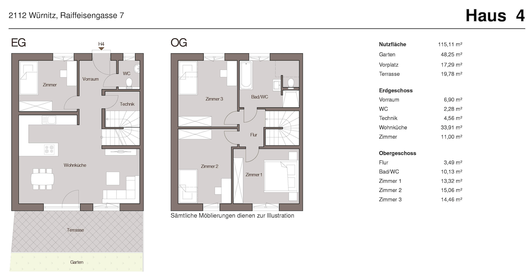 Großzügiges Reihenhaus mit sechs Zimmern, Terrasse und Garten im Projekt Würnitz.