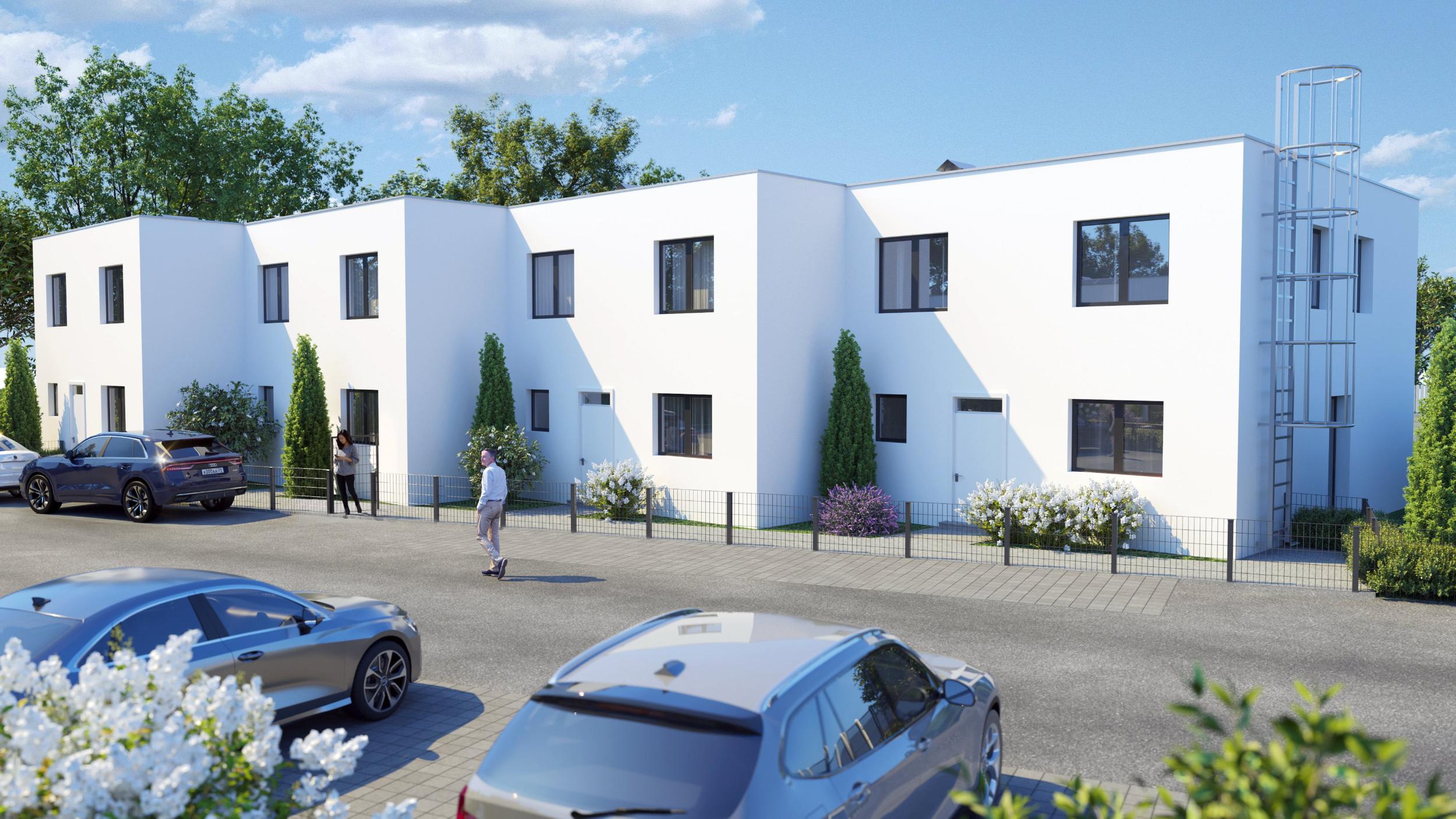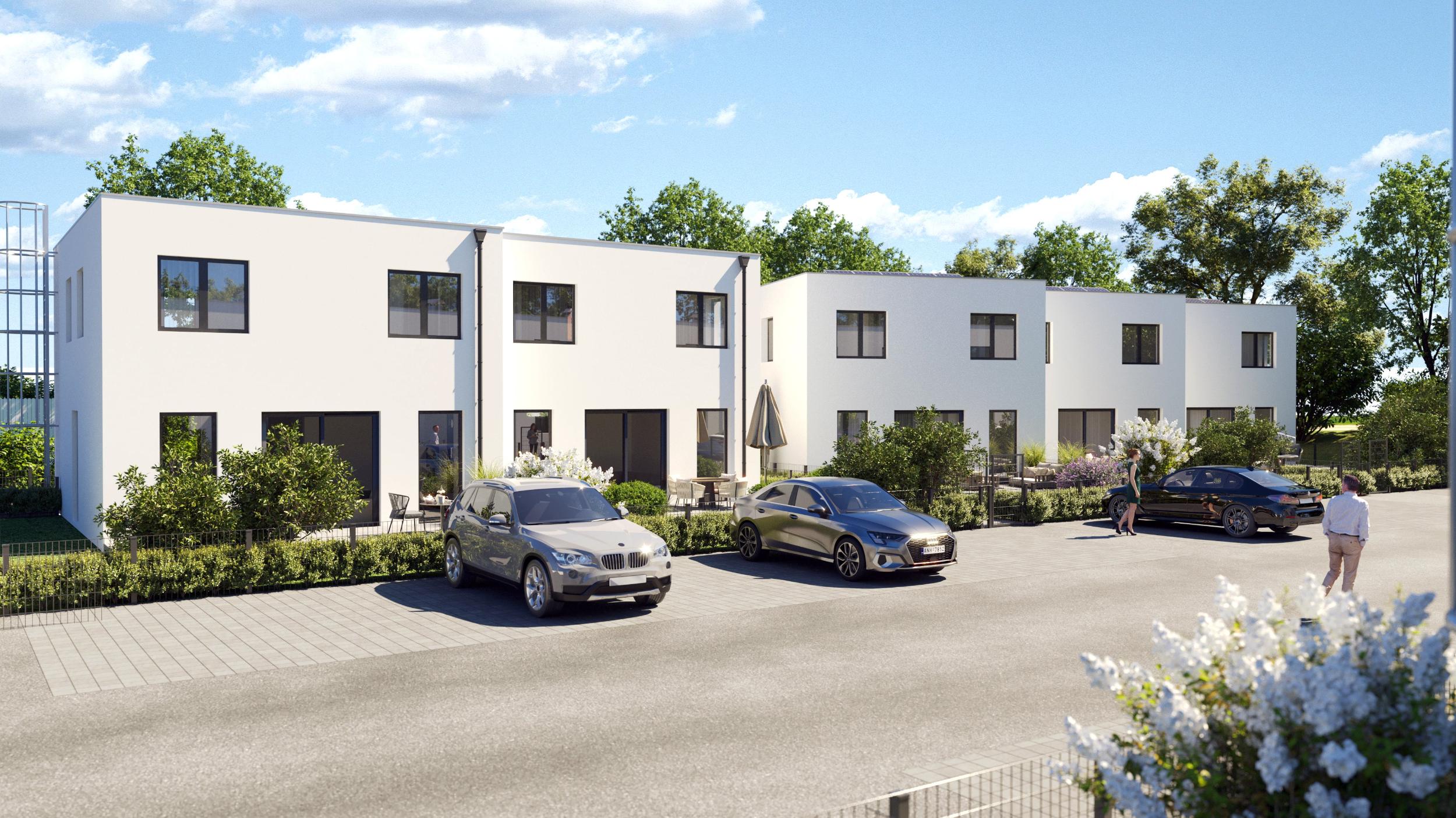 Modernes Reihenhaus mit ca. 108 m² Wohnnutzfläche, Vorgarten und gut nutzbarem Garten/Terrassenbereich. Inklusive zwei KFZ-Stellplätzen direkt beim Haus.